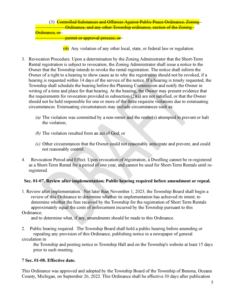 Posted on January 17, 2026, Edited January 17, 2026 by warren Proposed changes to the Benona Township Rental Ordinance pg. 5 Proposed changes to the Benona Township Rental Ordinance pg. 5